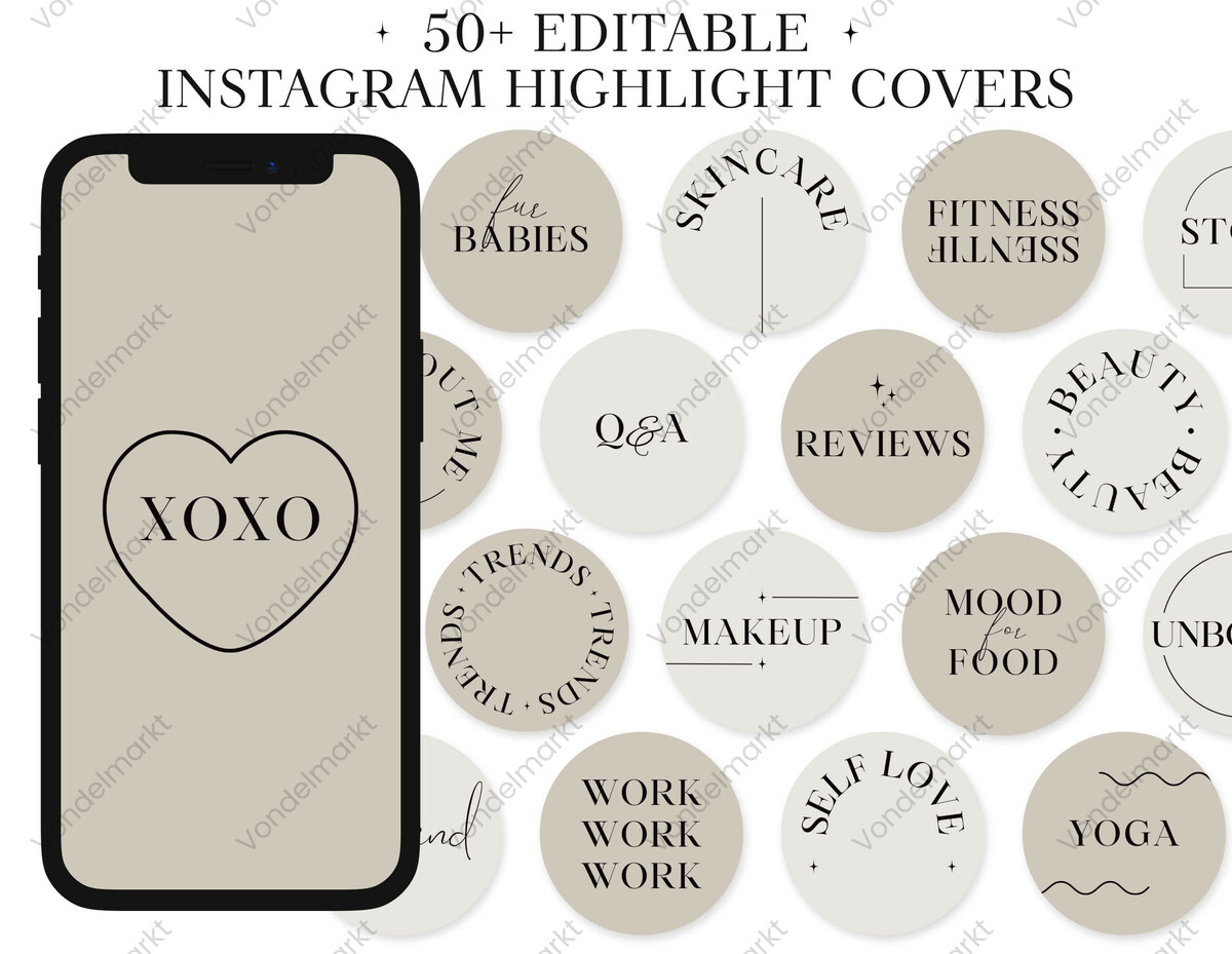 51 Aesthetic Instagram Highlight Icons for Bloggers and Influencers. Neutral background with elegant font.