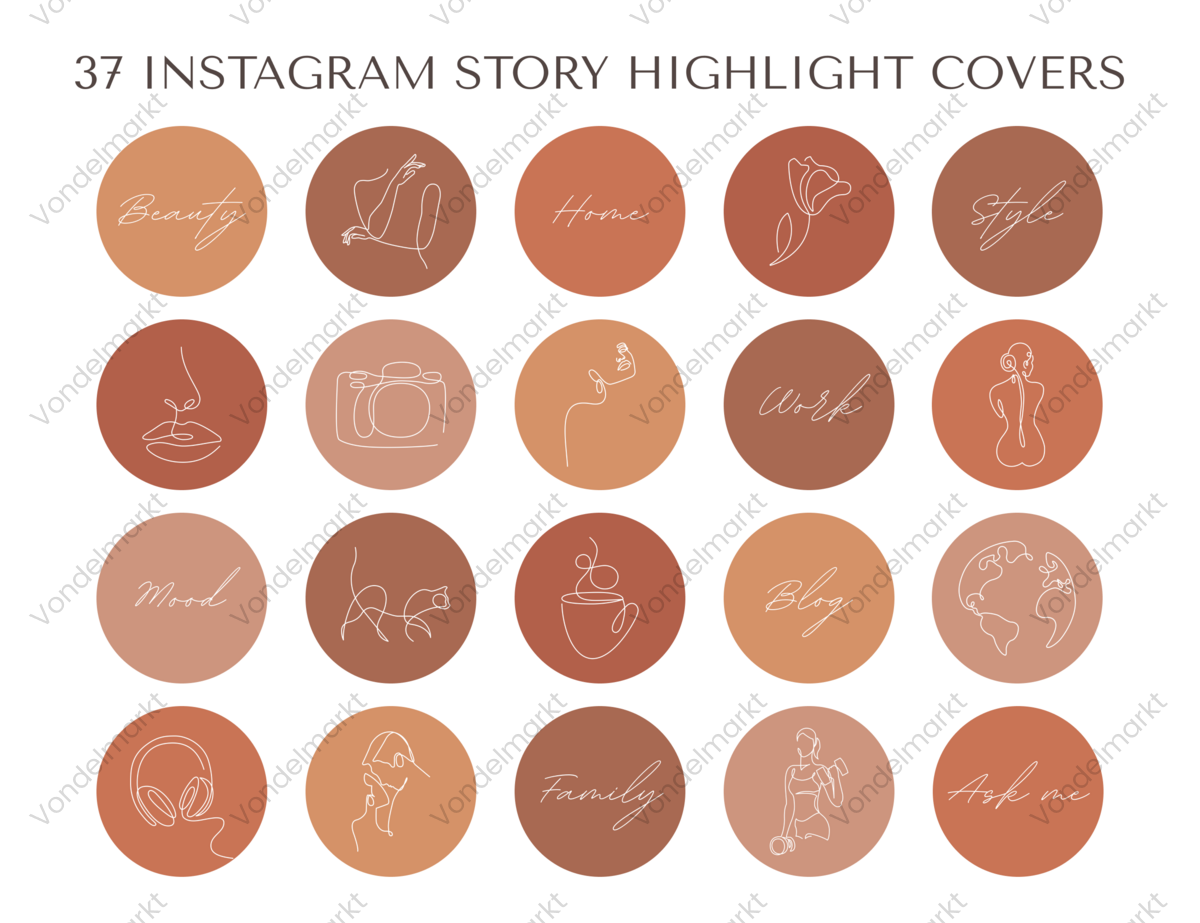 37 ready-to-use Instagram Story Highlight Covers. Icons included: